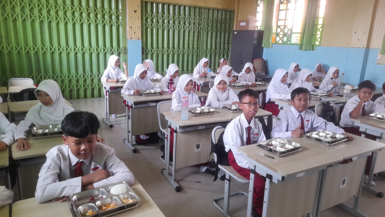 Ada pemandangan menarik saat jarum jam menunjukkan waktu makan siang. Para siswa dengan antusias namun tetap tertib mengikuti arahan bapak dan ibu guru. Suasana sekolah terpantau sangat kondusif; tidak ada kegaduhan, yang ada hanyalah keceriaan saat para siswa menikmati menu sehat bersama teman-teman sebayanya.